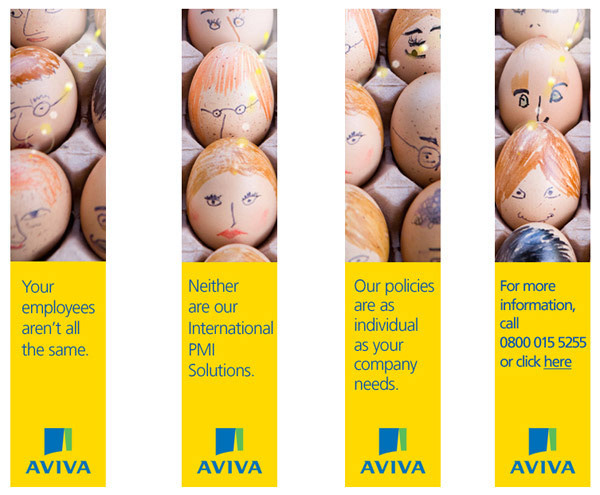 This campaign highlights the fact that international companies have various divisions of employees and therefore require different insurance policies.